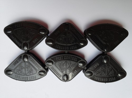 본제품은 방역소독전문업체에서 바퀴벌레, 개미약(식독제겔 및 과립또는 가루약)을 소분하여 넣을수 있는 빈용기입니다. 용기의 형태가 삼각형으로 출입구가 넓은 쪽에만 위치하여 삼각변의 모서리에 바퀴벌레 겔약 또는 개미약 과립제도 넣을 수 있게 만들어 바퀴벌레, 개미약용으로 다용도로 사용할 수 있도록 되어있습니다.